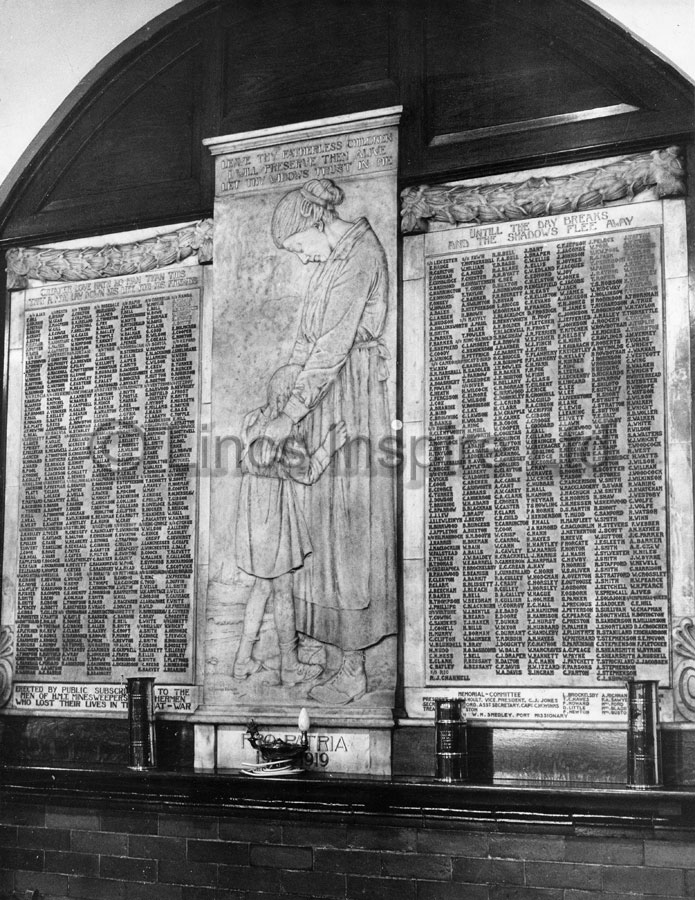 Memorial to fishermen who lost their lives at sea at the Bethel Mission church, Tiverton Street, Cleethorpes. December 1965.