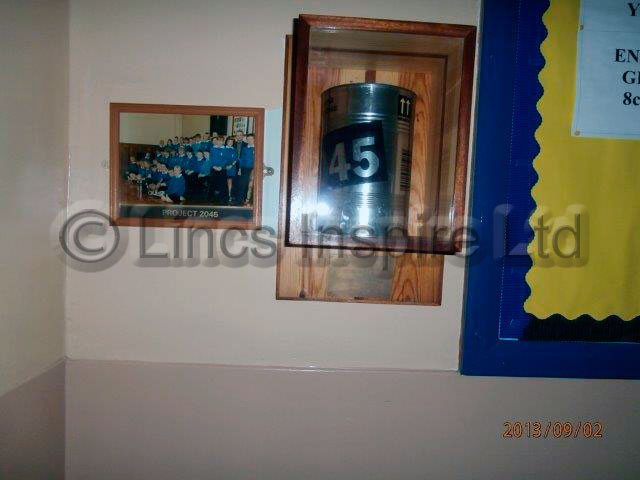Time capsule built by pupils of Matthew Humberstone lower school on the Clee Road site. Photograph taken just prior to the school site closing as the upper and lower schools combine to be under one roof under the new name of St Andrew's. 2nd September 2013.
