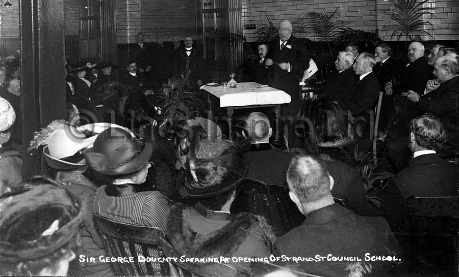 Sir George Doughty speaking at the opening of Strand Street Council School, Grimsby. The school was opened on the 12th Janaury 1912.