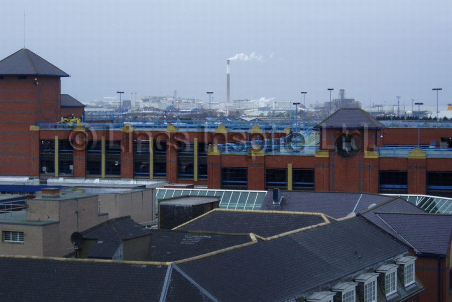 View from the roof of Grimsby Central Library looking towards Freshney Place shopping centre. At the bottom of this photo are the bay windows of the 1st floor of the building which is now the Post Office on the corner of Victoria Street and Haven Street.