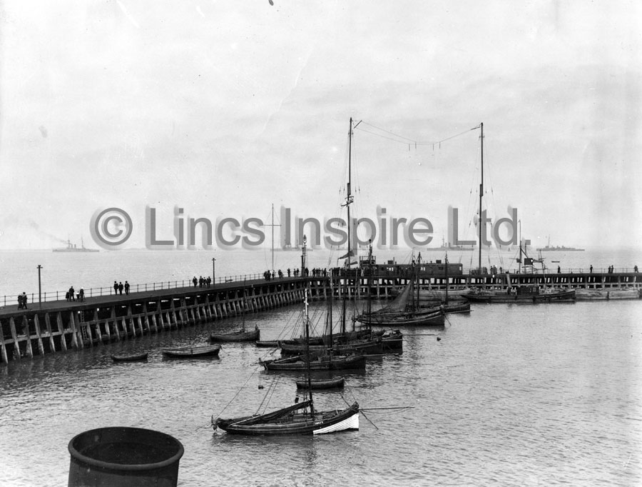 Navy wireless station just off the Royal Dock at the tidal basin, April 1915. Note warships in the distance.