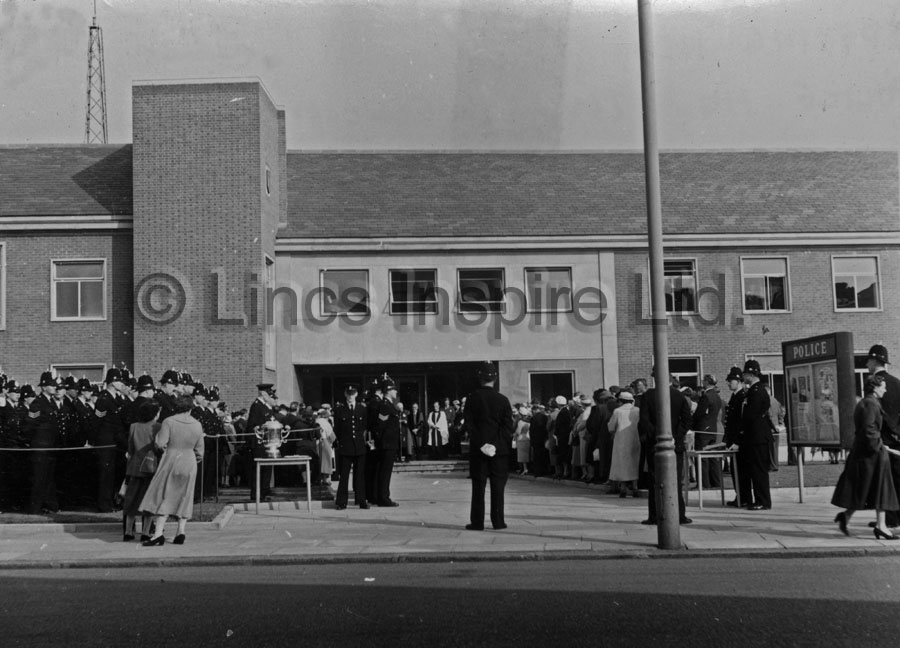 20th September 1957. Grimsby's new police station on Victoria Street North is opened by the Duchess of Gloucester.