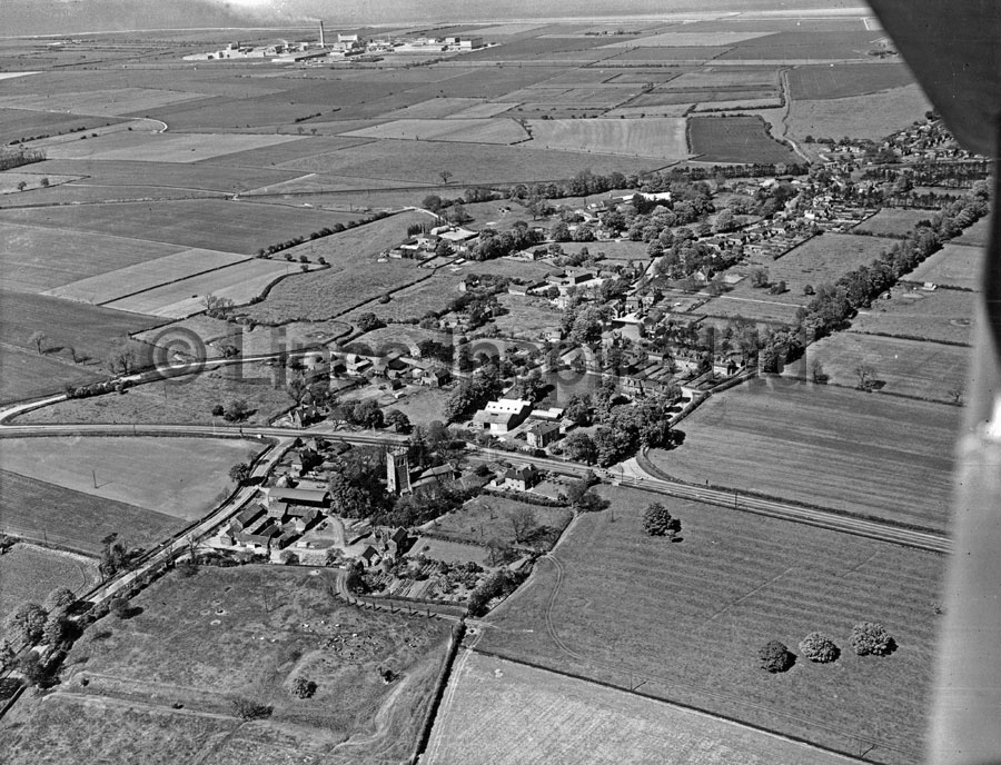 Great Coates viewed from the air in 1962 looking northwards. St Nicholas Church is in the centre of the photograph, with Great Coates road going across the photograph horizontally.