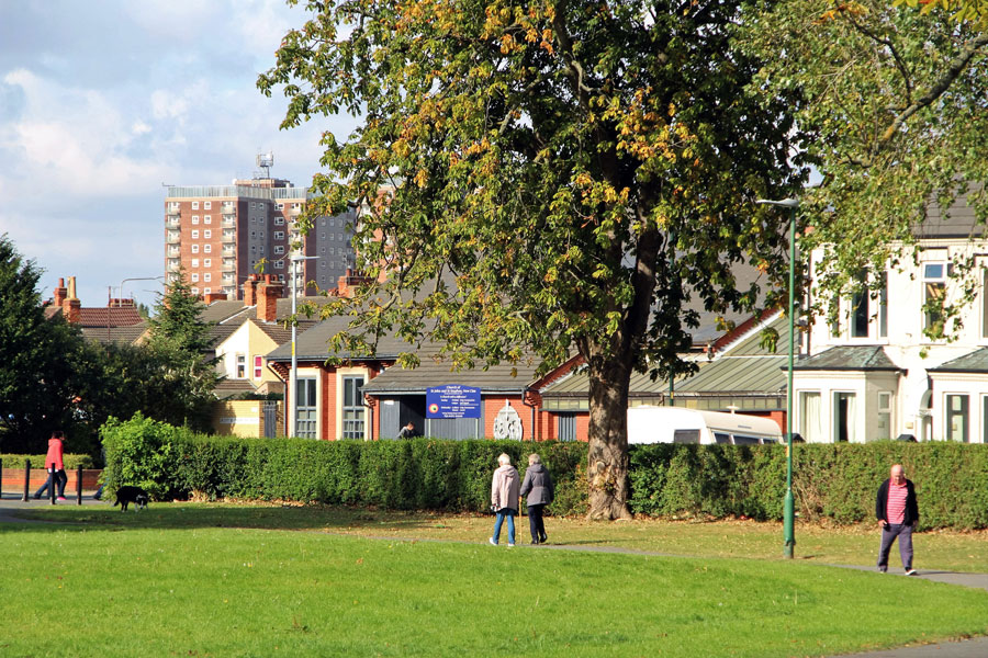 Circa 2016. Grant Thorold Park looking towards Roberts Street and the church of St. John and St. Stephen.